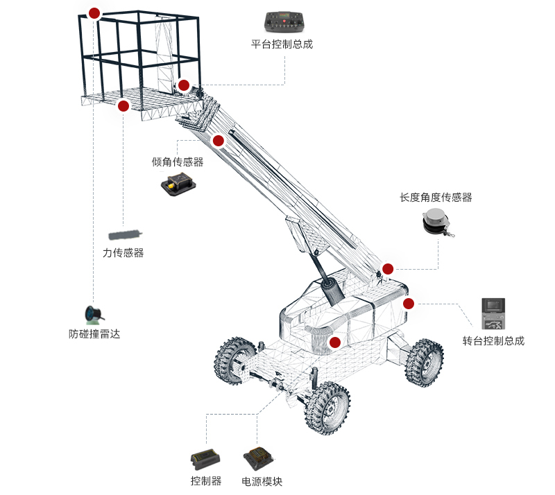 z6com·尊龙(中国)时凯集团直臂式高空作业平台配备智能控制技术和安全监测装置,通过采集AI模拟量、DI数字量并结合运动算法后,对PWM信号、DO信号进行自动化控制,从而在安全的范围内实现各种自动功能,确保作业平台在高度作业中的精确定位和安全稳固。适用于高层建筑、大型设施维护等场景。